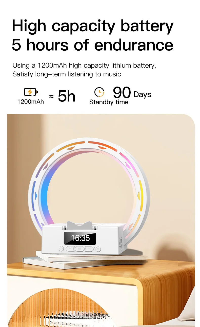 High capacity battery 5 hours of endurance. Using a 1200mAh high capacity lithium battery, Satisfy long–term listening to music.