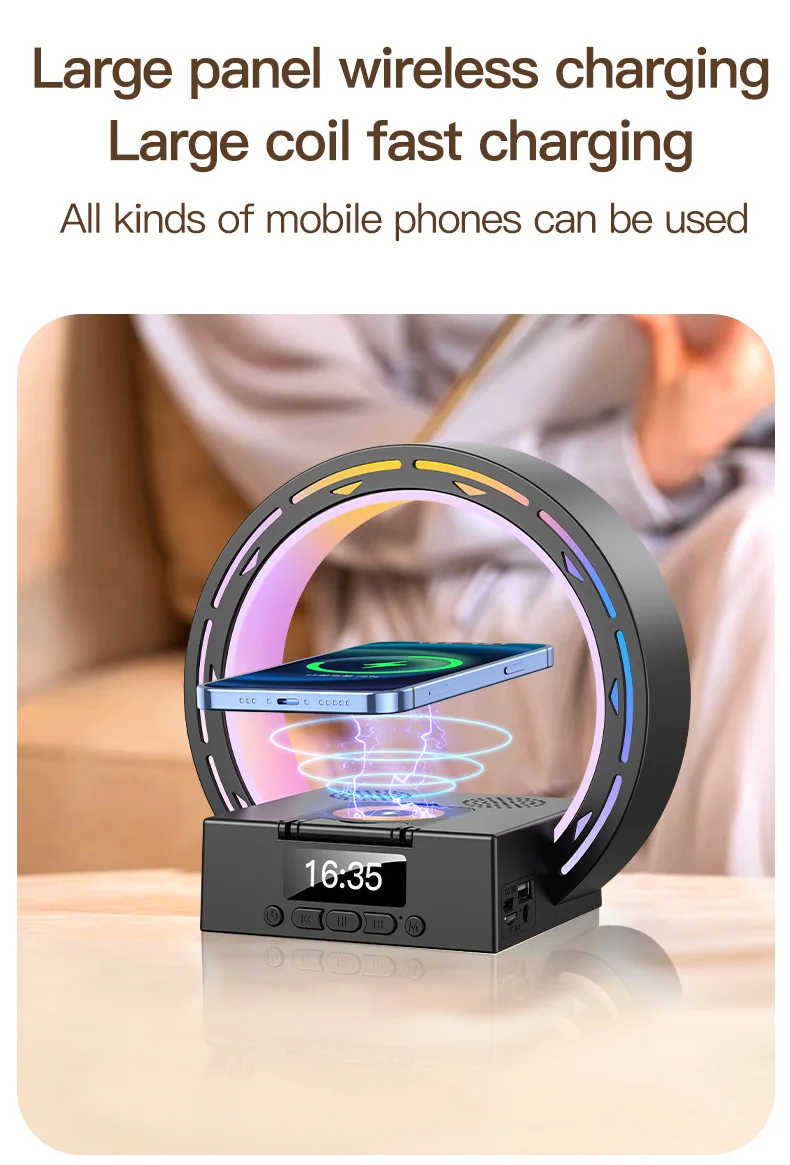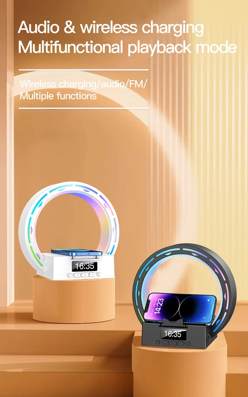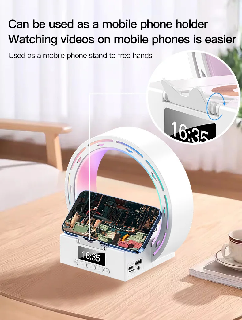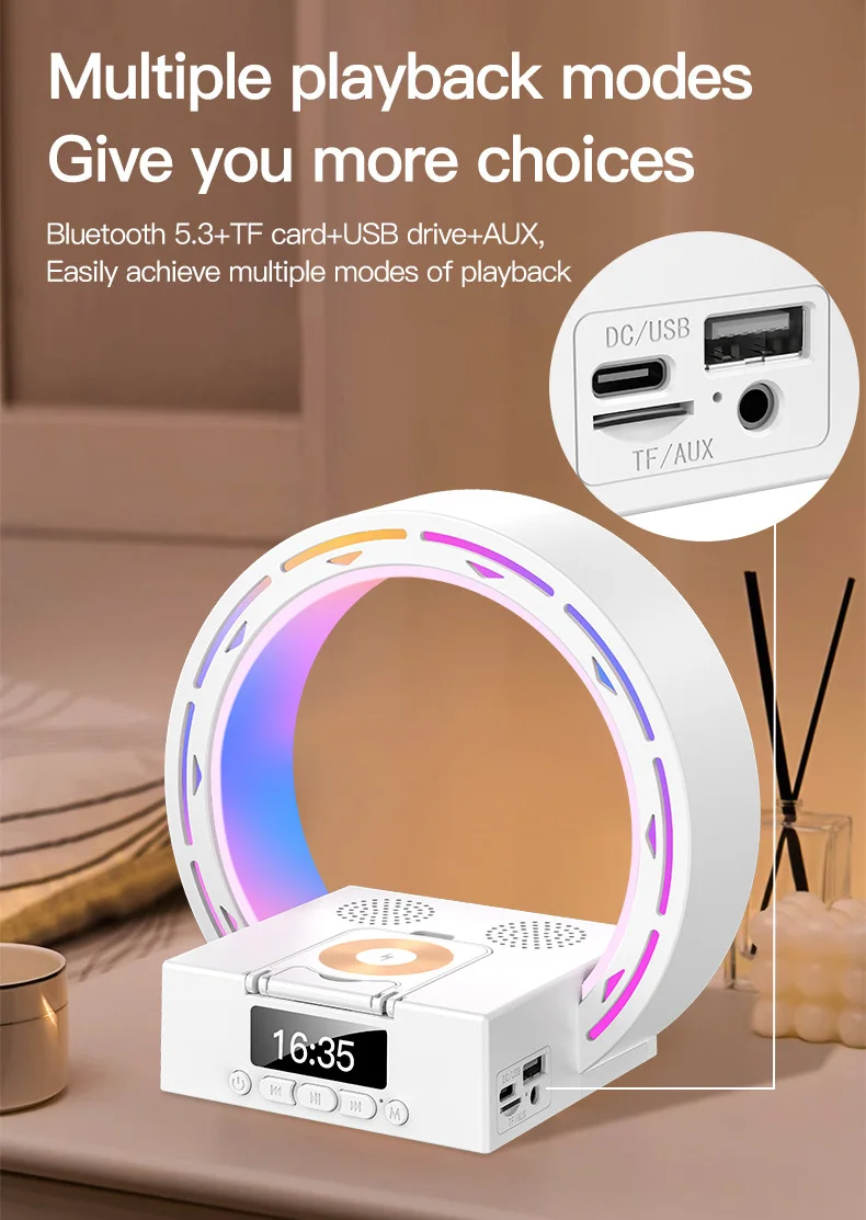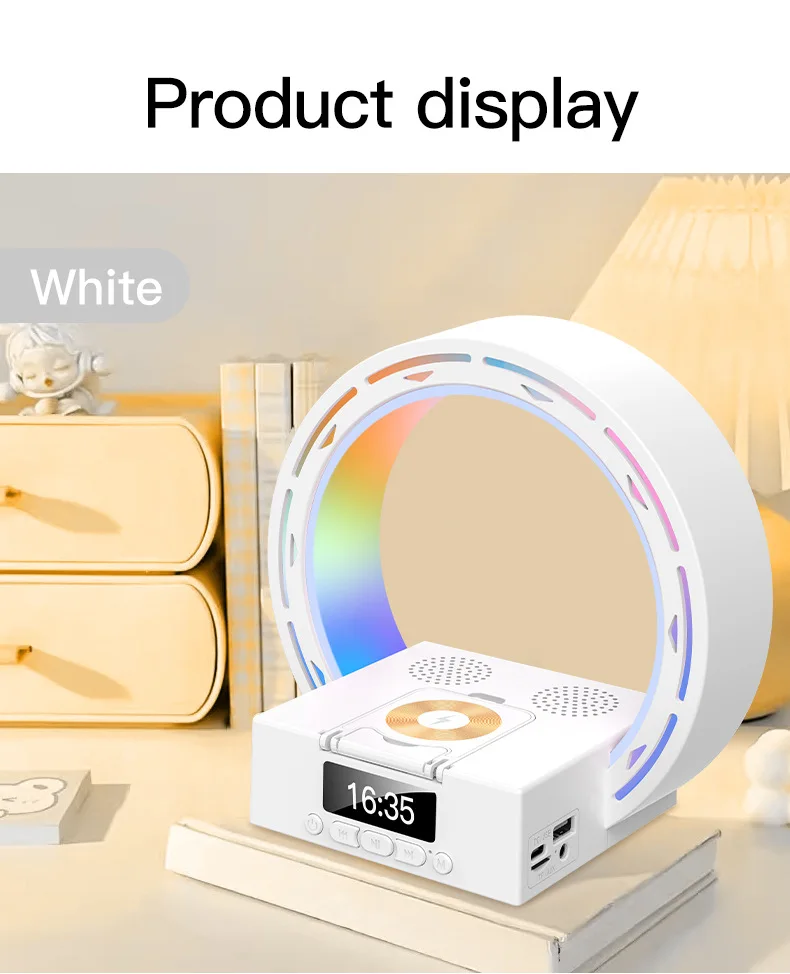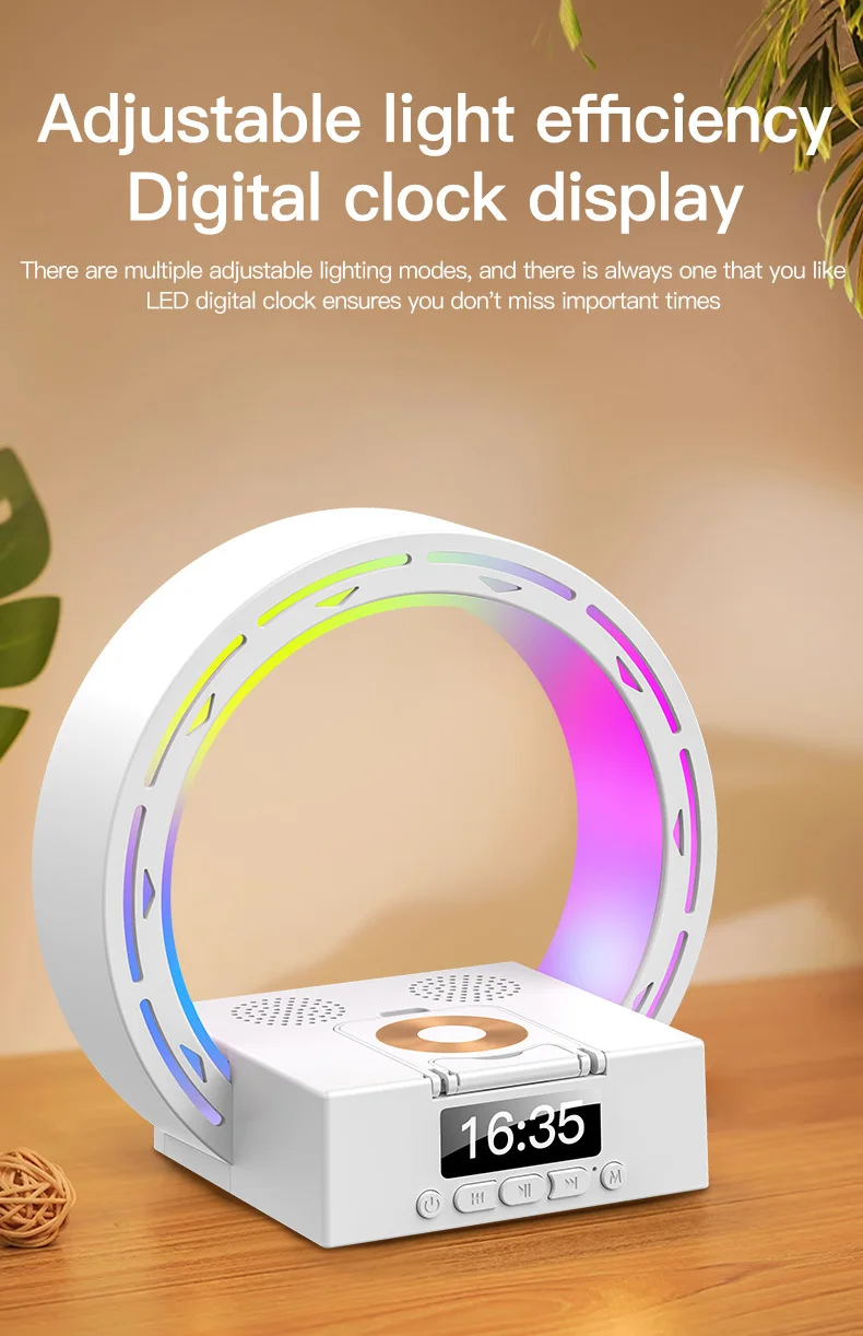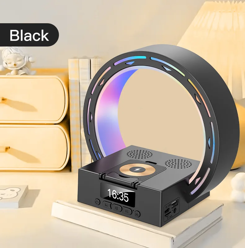 4 in 1 Bluetooth Speaker Wireless Charging Bedside Lamp With Alarm Clock Wake-Up Light for Bedroom Support USB Drive TF Card