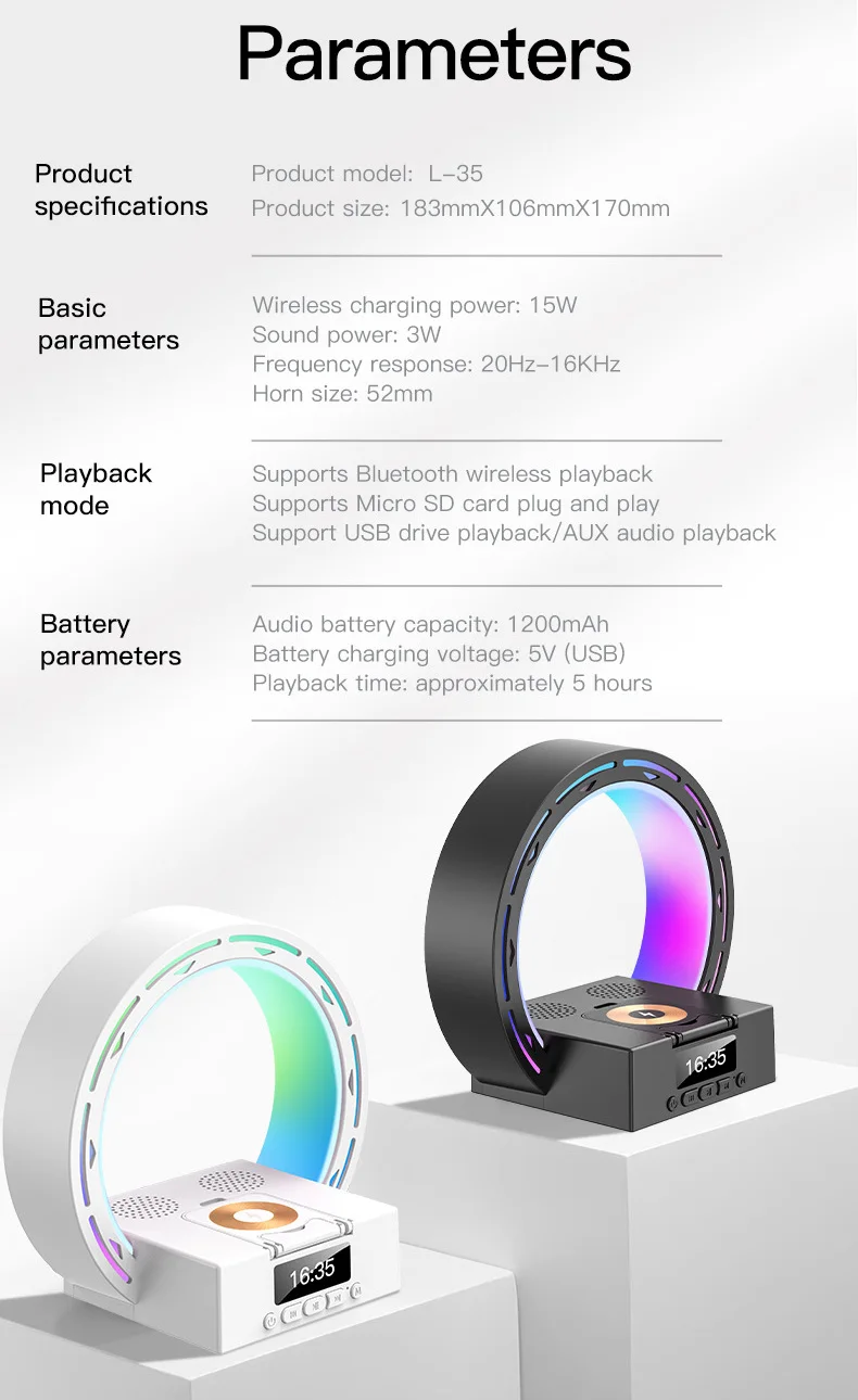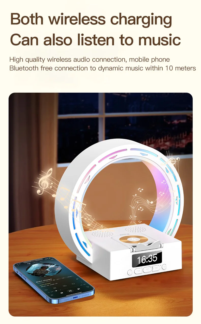 Both wireless charging, can also listen to music High quality wireless audio connection, mobile phone Bluetooth free connection to dynamic music within 10 meters